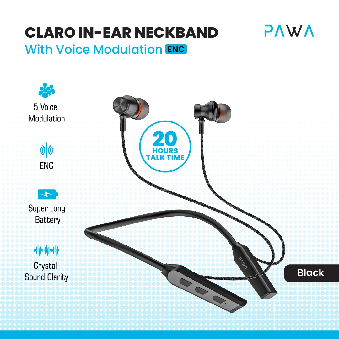 Pawa Claro ENC Neckband PW-CLNBINE6 – Bluetooth 5.1 Wireless Earphones with Voice Modulation & 20-Hour Battery Life,