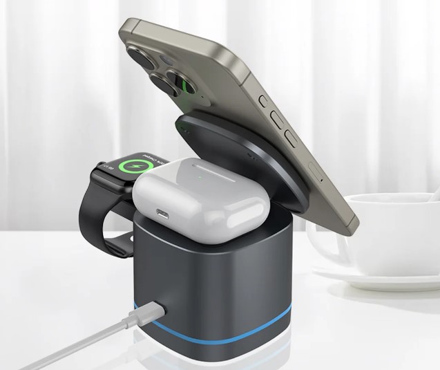 Pawa Cube 3-in-1 Magnetic Wireless Charger MG311PWA – Fast Charging Station for Phone, Watch & Earbuds,