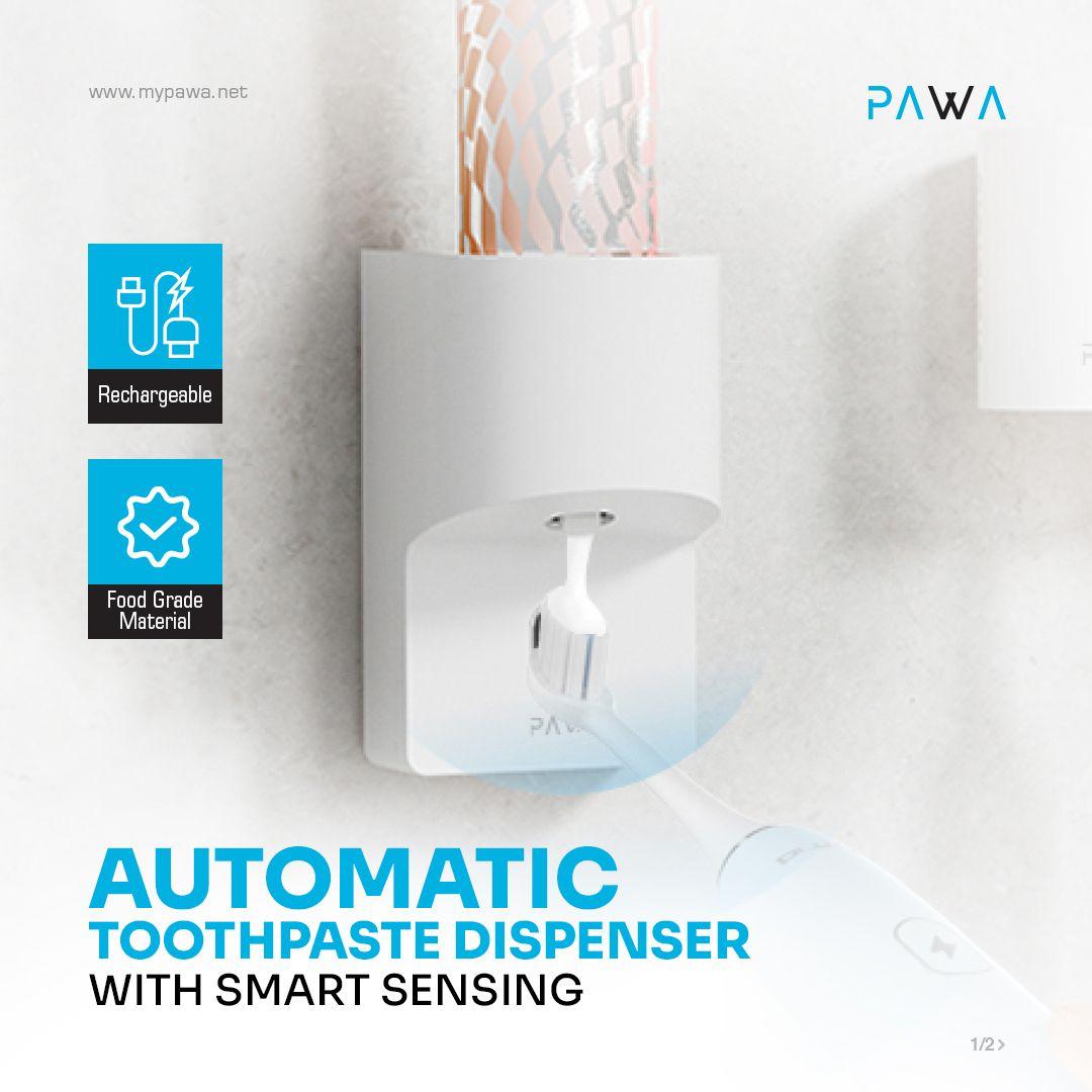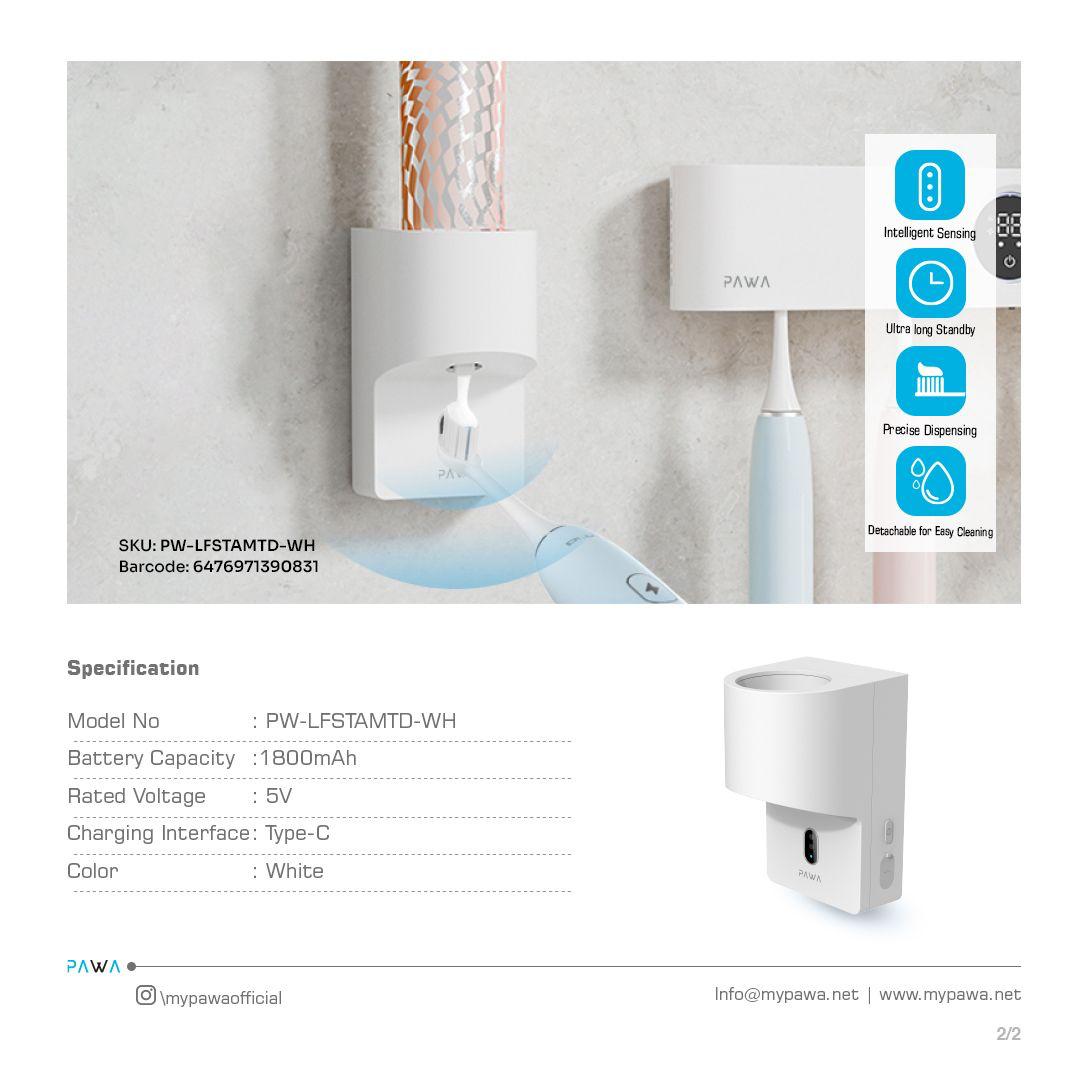 Pawa PW-LFSTAMTD-WH Automatic Sensor Toothpaste Squeezer – Hands-Free Wall-Mount Dispenser,