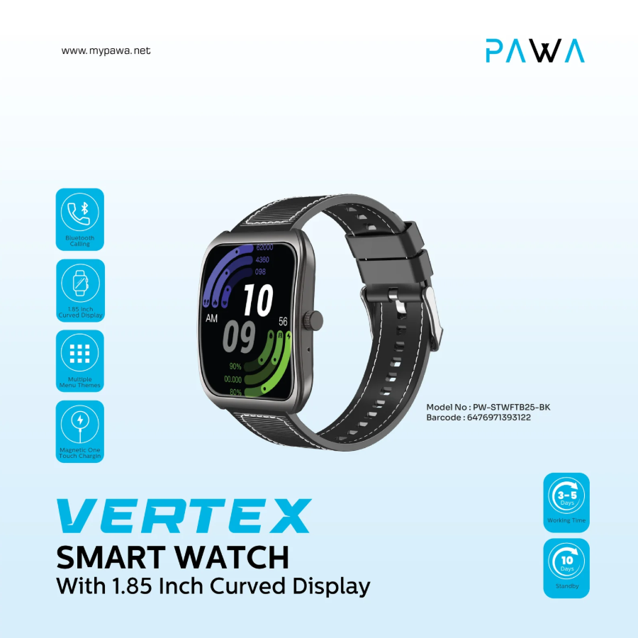 Elevate your lifestyle with the Pawa Vertex Smart Watch in Oman, featuring a stunning curved HD display, advanced fitness tracking, and smart connectivity for effortless daily convenience.