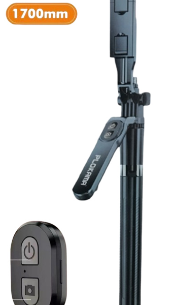 Plokama Live P9 Selfie Stick Tripod + LED Light & Bluetooth Remote – 170 cm Extendable Vlogging Stick, Foldable & Compact –