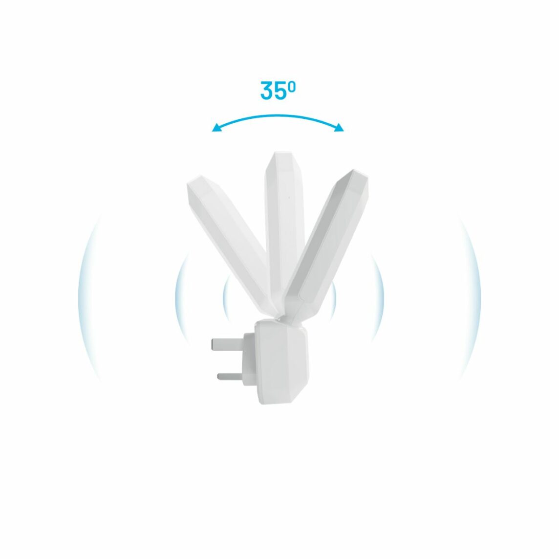 Equipped with dual 23dBi antennas, the extender offers expansive coverage, penetrating walls and obstacles to provide a stable connection throughout your home or office. Its WPA3 security protocol safeguards your network against unauthorized access, ensuring your data remains protected.
