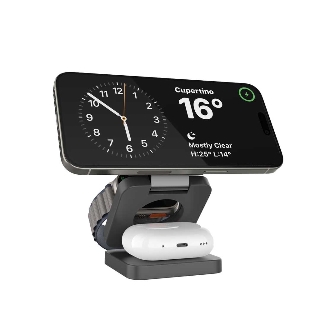 Delivering up to 15W fast wireless charging for smartphones, 5W for earbuds, and 3W for smartwatches, it ensures your devices are charged swiftly and safely. The MagSafe compatibility guarantees a secure connection, providing optimal charging efficiency for your iPhone and other compatible devices.