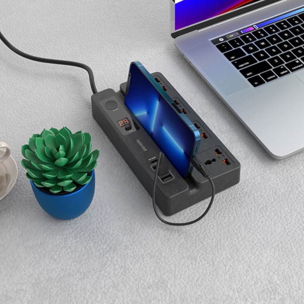 Enhance your power management with the Porodo 4 AC 3 USB & USB-C PD 35W Multiport Socket, designed for efficiency and convenience. This porodo multiport socket features four AC outlets and three USB ports, including a USB-C PD 35W charger, allowing simultaneous charging of multiple devices.