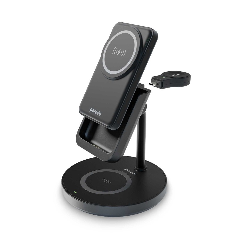 PORODO 5000 mAh 4‑in‑1 MagSafe Power Bank Dock (PD‑PBF CH024) – Wireless Multi‑Device Charger –