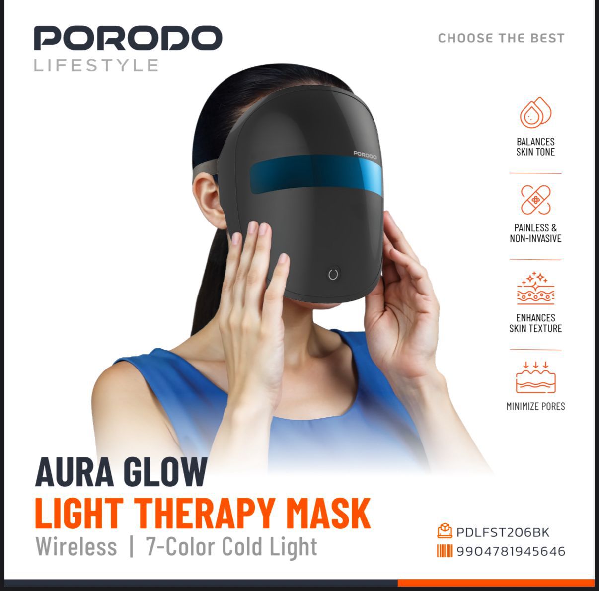 Porodo Aura Glow Light Therapy Mask LFST206 – LED Skin Rejuvenation at Home –