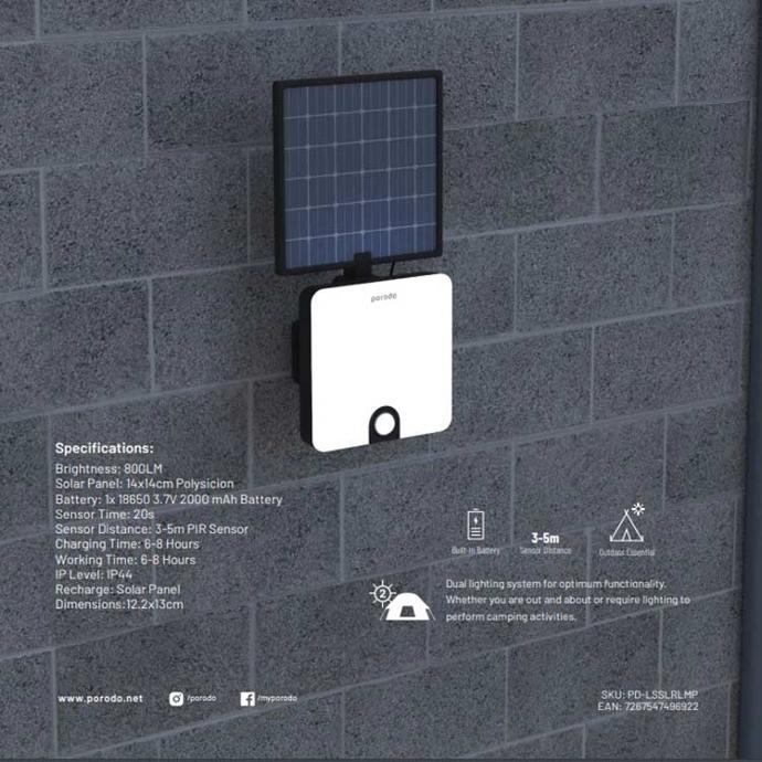 Porodo Foldable Smart Outdoor Solar Lamp (PD-LSSLRMP) – 800 Lumens, 2000mAh Rechargeable Battery,