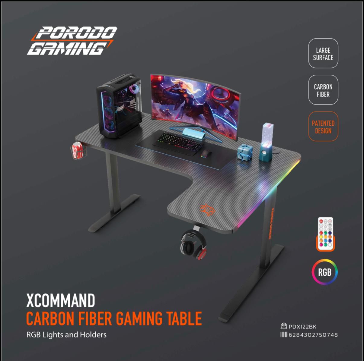 Porodo Gaming Xcommand Carbon Fiber Gaming Table in Oman – Pro RGB Battle Station Setup