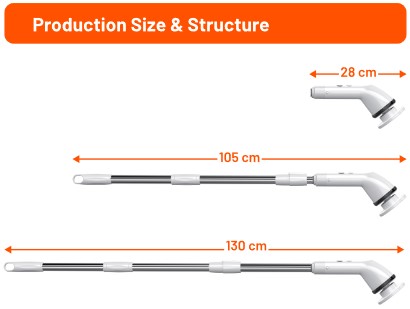 Its IPX6 waterproof rating ensures safe operation in wet conditions, making it perfect for bathrooms and kitchens. The adjustable length of up to 130 cm provides extended reach, allowing you to clean hard-to-access areas with ease.