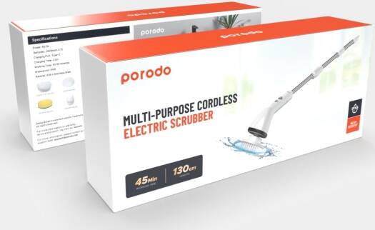 Porodo Lifestyle Multi-Purpose Cordless 7-in-1 Electric Scrubber PD-LFSESC-WH – IPX6 Waterproof, 2500mAh Battery, Type-C Charging,