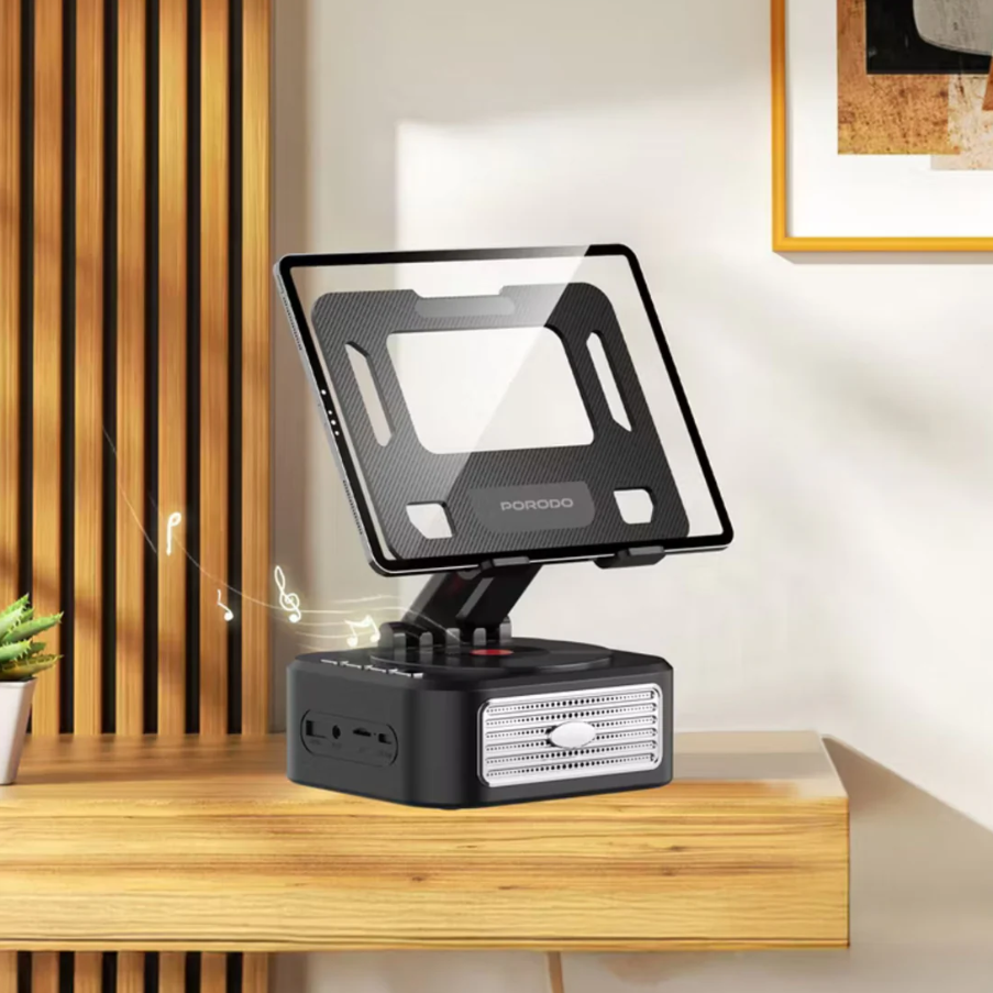 Porodo Lifestyle Multifunctional Tablet Speaker Stand PD‑LFST175 – 5 W Speaker, 1200 mAh, 360° Stand & Power Bank –