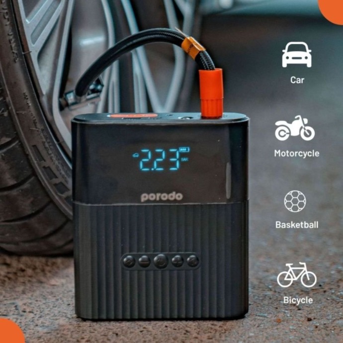 Designed for versatility, the Porodo PD-2IN1JSAP-BK is suitable for jump-starting vehicles with up to 7L petrol or 6L diesel engines, including cars, motorcycles, boats, and more. The integrated air pump can inflate tires up to 5 inches in just 6 minutes, making it ideal for maintaining optimal tire pressure.