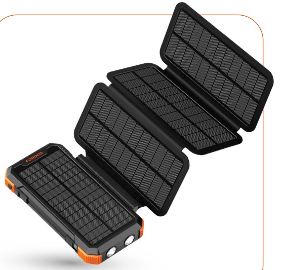 Porodo PB070 20,000 mAh 4‑Panel Solar Power Bank – 20 W USB‑C PD, Hand‑Crank, Flashlight & IP45 Water-Resistant (Price In Oman)