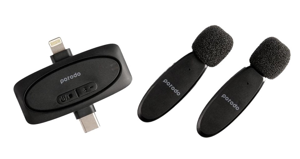 Porodo PD-2MLAV-BK Dual-Mic Lavalier – Lightning/Type-C/AUX – 7.5 h Use