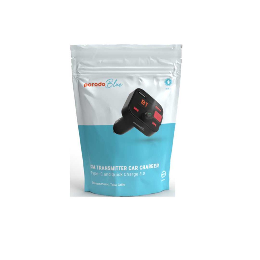 Porodo PD‑FMT36W Blue – FM Transmitter & Type‑C Quick Charge Car Adapter (36 W)