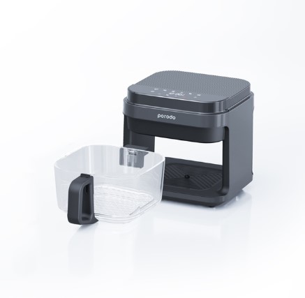 The full-glass design offers a crystal-clear view of your food in action, while the touch control panel and 60-minute timer make cooking simple and intuitive. The unit includes a non-stick basket, a baking tray for flexible meal prep, and a heat-proof handle for safe handling. Dishwasher-safe components make cleanup a breeze.