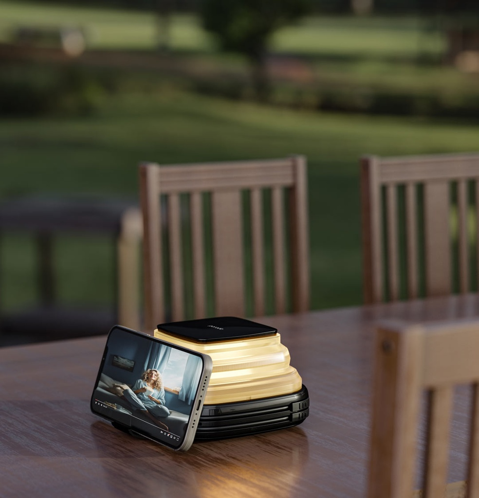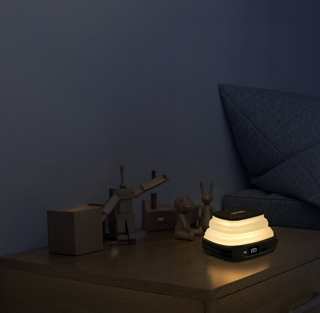 Porodo PD-PBFCH030-BK Outdoor Night Light & 10000mAh Power Bank – Integrated Lightning & Type-C Cables, Digital Display, Built-in Phone Holder – Ideal for Travel and Camping,