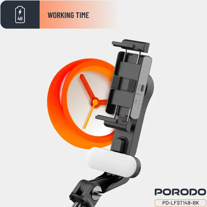Porodo QuadBase Gimbal Stabilizer LFST148 – 3-Mode Bluetooth Video Stabilizer with Detachable Light & Foldable Quad-Base Tripod
