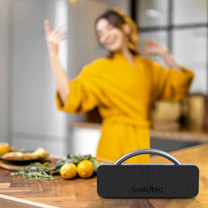 Enhanced with hands-free calling, TWS stereo pairing, and convenient control buttons, it’s as versatile as it is powerful. Whether you’re throwing a beach party, relaxing poolside, or listening at home, the Soundtec Avant brings performance and reliability — along with local warranty and fast delivery from Sky Gadgets Oman.