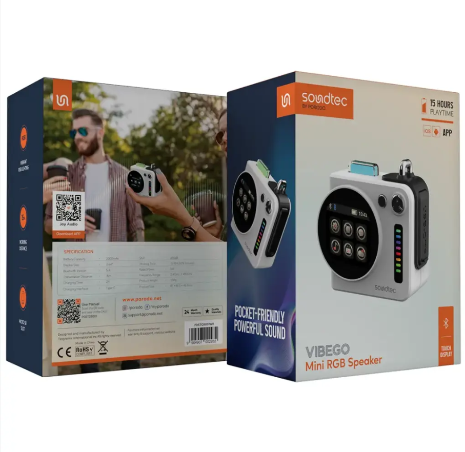 Get ready to light up your audio experience with the bold“mini Bluetooth speaker Oman”** designed by Porodo. The Porodo Soundtec VIBEGO Mini RGB Speaker (model PDSTQS001) brings vibrant bold“RGB speaker Oman”** lighting effects, wireless bold“portable speaker Oman”** convenience, and high-quality sound in a compact form. With the latest bold“Bluetooth 5.4 speaker Oman”** capability, you can connect your phone or tablet quickly and stream favourite tracks with minimal lag. A built-in micro SD slot and AUX support let you play music even without a phone. The bold“speaker with RGB lights Oman”** feature delivers colourful lighting patterns that sync with your mood or music—perfect for a home party or personal chill zone. Charging via USB-C ensures convenient top-ups, making this the ideal bold“Porodo mini speaker Oman”** for everyday use or travel. Whether you’re seeking a bold“compact party speaker Oman”, a stylish gift, or a reliable bold“wireless speaker RGB Oman”, the VIBEGO covers it all. At Sky Gadgets Oman, we’re proud to offer this sleek bold“Porodo speaker PDSTQS001 Oman”** model that stands out in both design and performance. Shop today and let your sound shine.