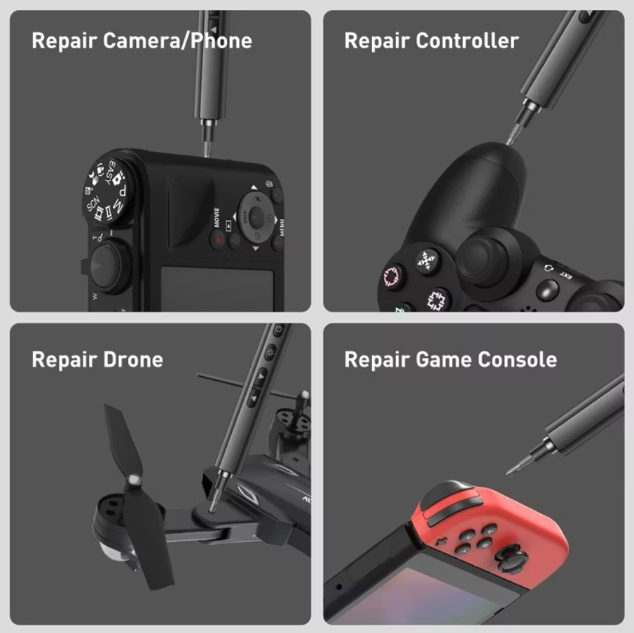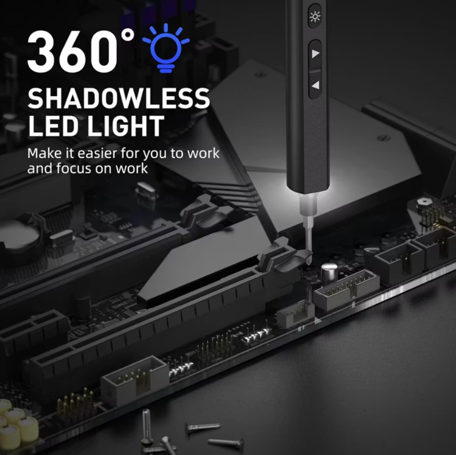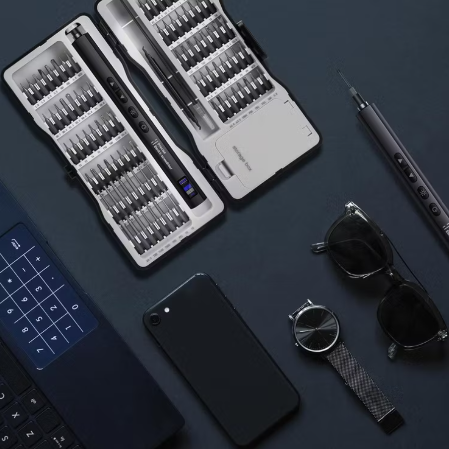 The precision electric driver supports rechargeable operation via USB-C, delivering consistent torque and safe handling. An LED light built into the driver helps you see small screws and tight spaces clearly, ensuring accuracy. All tools come neatly organized in a sturdy carry case, making this a portable repair set Oman makers, tech-enthusiasts, and technicians will love.