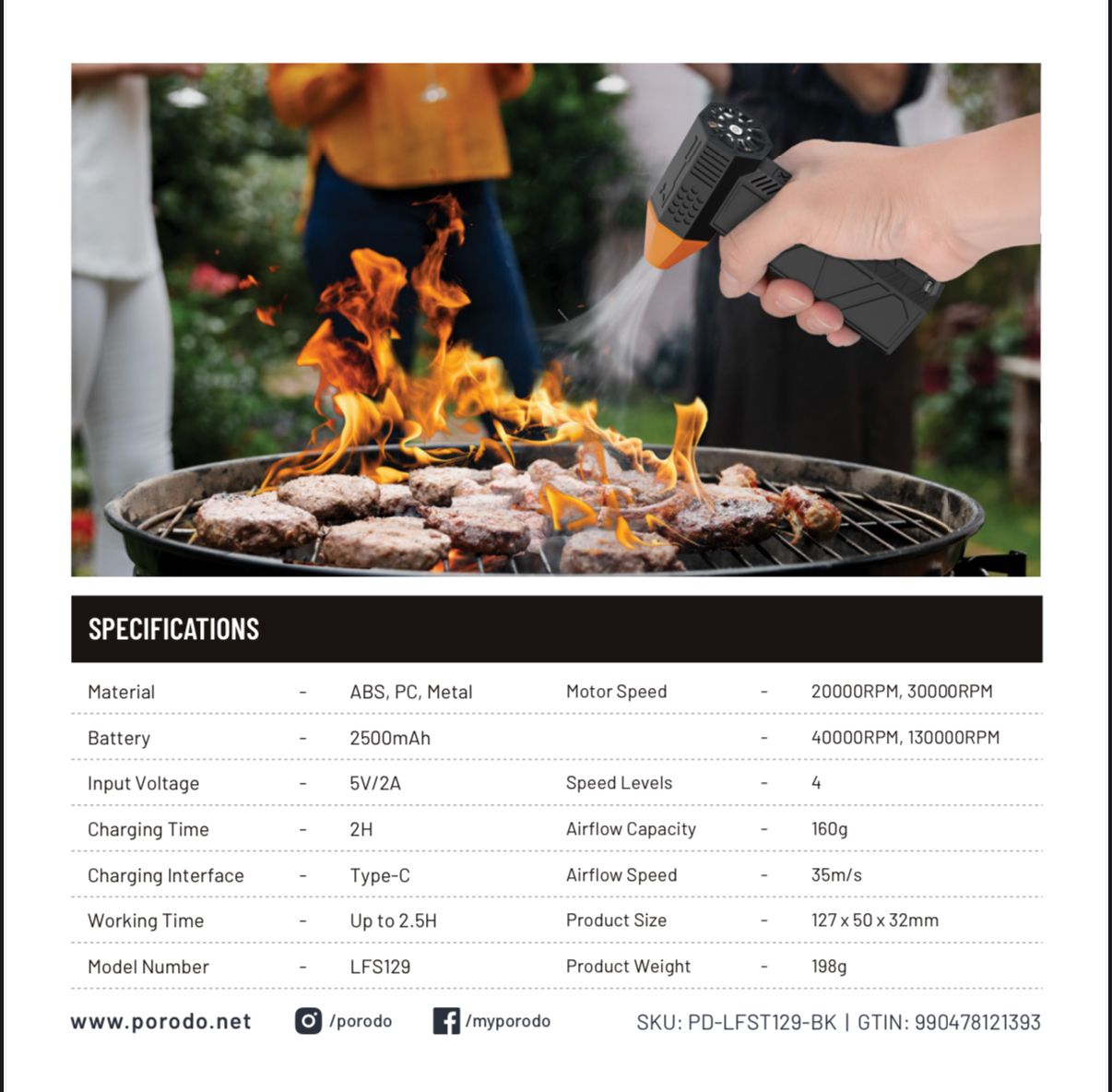 Porodo Turbo Jet Air Blower PD-LFST129-BK – Powerful Handheld Dust Cleaner for Electronics & Home Use,