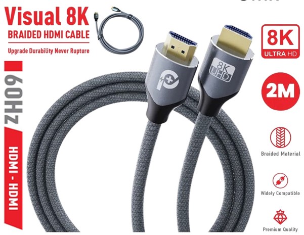 Powero+ 2M 8K Braided HDMI Cable (HDMI8K2M) – Ultra HD 8K@60Hz, 48Gbps High-Speed, Nylon Braided, 2-Meter Length, Best Price In Muscat Oman
