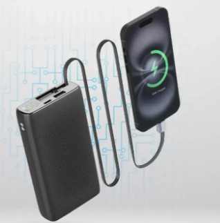 Powerology 20000 mAh Retractable Cable Power Bank – 35 W Fast Charge with Built‑in 70 cm Type‑C Cable (PP072)