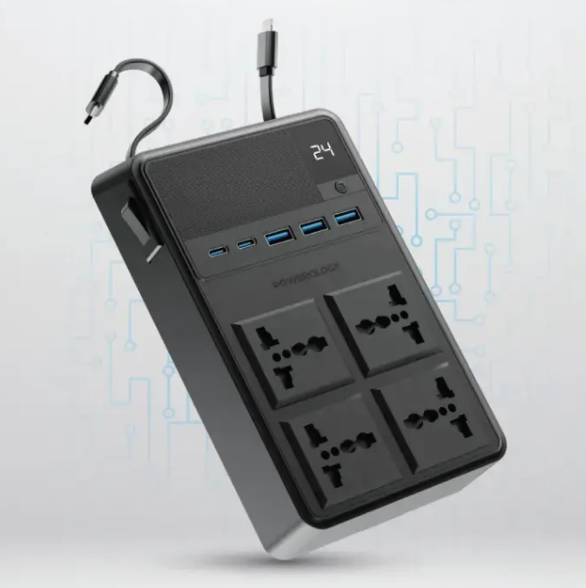 Experience maximum convenience with the Powerology 2500W 4-AC Retractable Cable Power Strip PWC029, the ultimate compact power solution tailored for Oman’s modern lifestyle. Equipped with four universal AC sockets, this retractable cable power strip delivers a mighty 2500W output, accommodating everything from laptops and monitors to printers and home gadgets. Enhanced with USB-C (PD 20W) and USB-A (QC3.0 18W) ports, it supports fast-charging power strip functionality—charging your devices rapidly and efficiently.