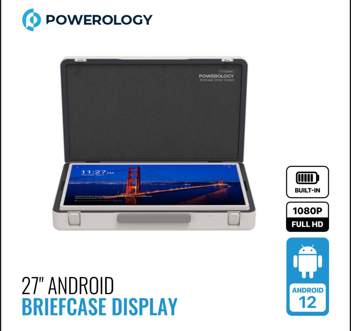 Powerology 27″ Android Briefcase Display PUHD27WH – Full HD Touchscreen, 8GB RAM, 128GB Storage, WiFi 6, Bluetooth 5.2,