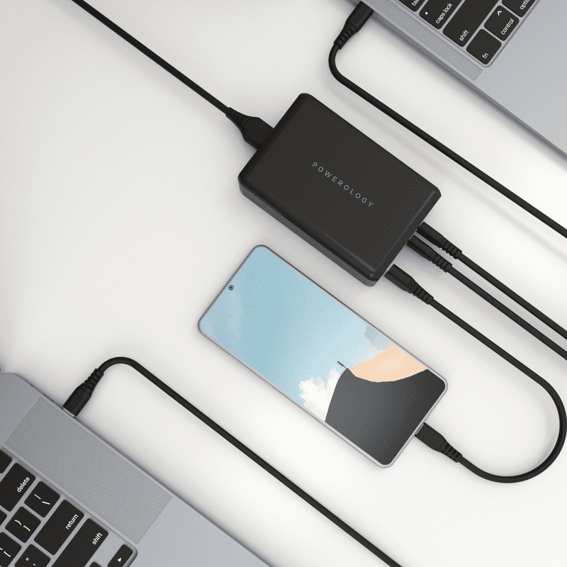 The Powerology 156W charger boasts a compact and travel-friendly design, complete with a 1.5-meter power cable and a 3-pin UK plug, ensuring compatibility across various regions. Its intelligent power distribution ensures optimal charging speeds while protecting your devices from overcharging and overheating.