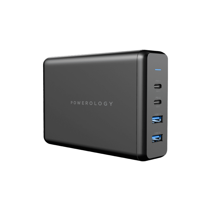 Powerology 4-Port Quick Charge Power Terminal PD 156W – Fast Charging Station with 2 USB-C & 2 USB-A Ports –