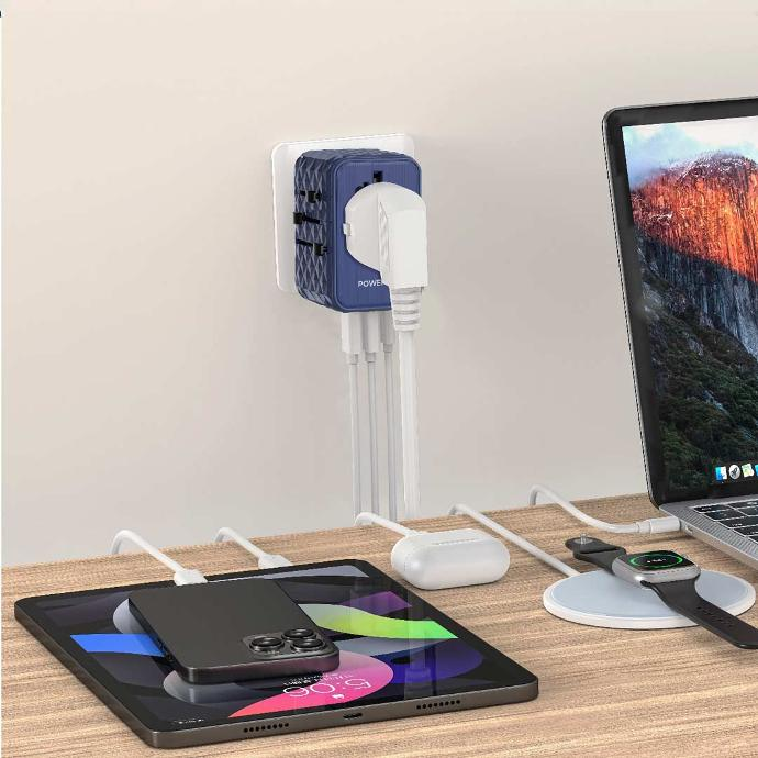 Discover effortless charging on the go with the Powerology GaN Universal Multi-Port Travel Adapter 65 W, designed for the modern traveler in Oman. This compact multi-device charger Oman packs three USB-C and two USB-A ports, offering fast and simultaneous charging for laptops, smartphones, tablets, and more. Powered by advanced GaN technology Oman, it maintains a small profile while delivering efficient heat control and superior performance.