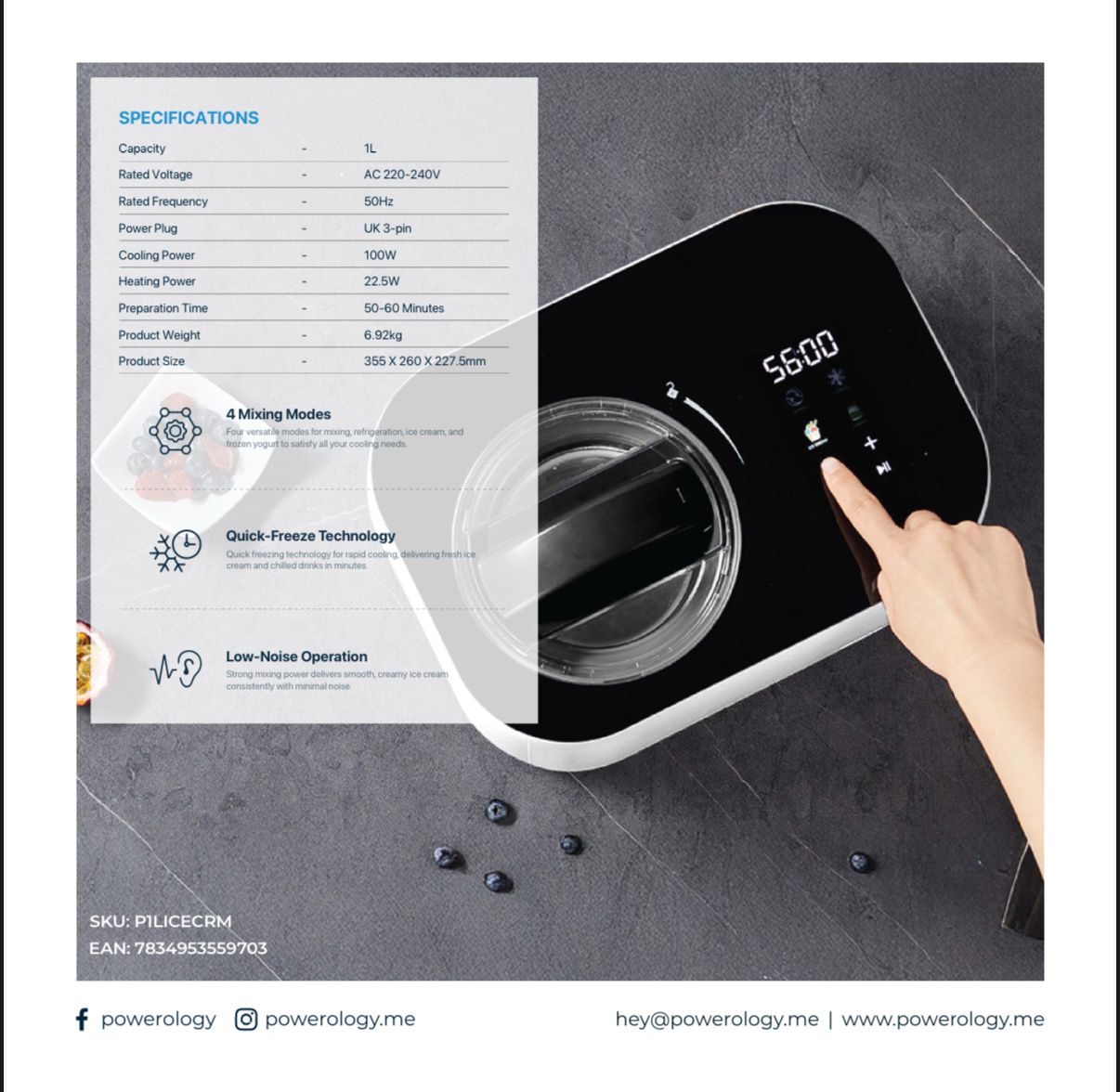 Powerology Ice Cream & Frozen Yogurt Machine P1 LICENCE – Homemade Ice Cream Maker