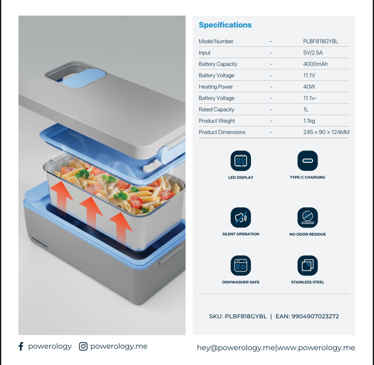 Model: Powerology Lumo Portable Heated Lunch Box (PLBF818GYBL)