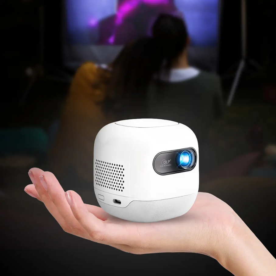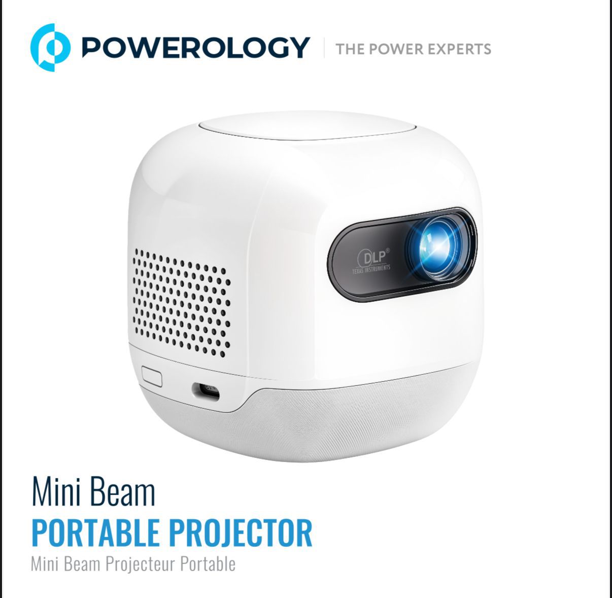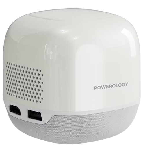 Powerology Mini Beam Portable Projector PWMPM2WH (White) – 720p Android 13, 100 ANSI Lumens, 8700mAh Battery, Up to 200″ Screen