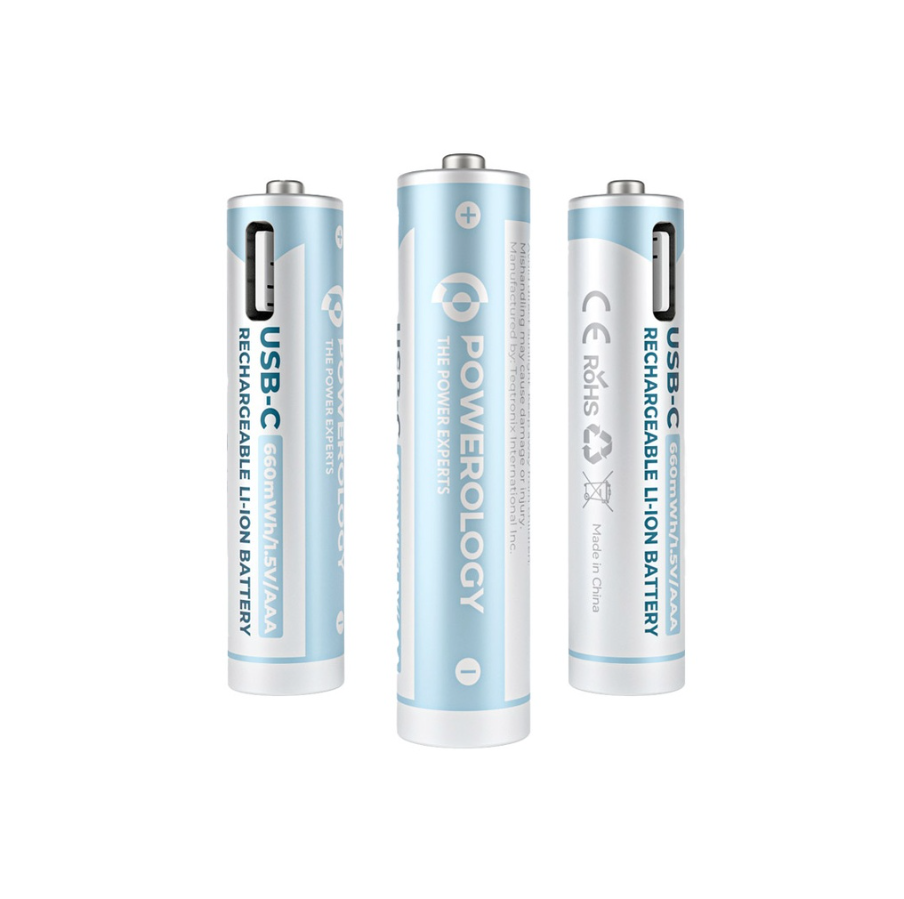 Powerology PAA V2RBT USB-Rechargeable AAA Battery Pack (4 pcs) – 1.5 V Lithium-Ion, 450 mAh, USB-C Charging (Price In Oman)
