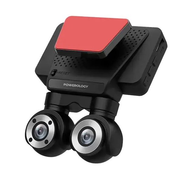 Powerology CAM108-P4K Dual Lens Dash Camera – 4K Front & Rear Car Surveillance with Night Vision and GPS,