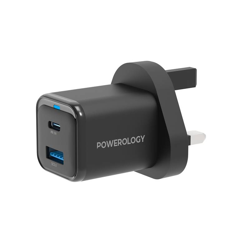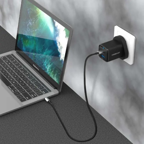 Powerology PWC032 Dual Port Retractable GaN Charger – 65W Fast USB-C Charger for Laptops & Smartphones