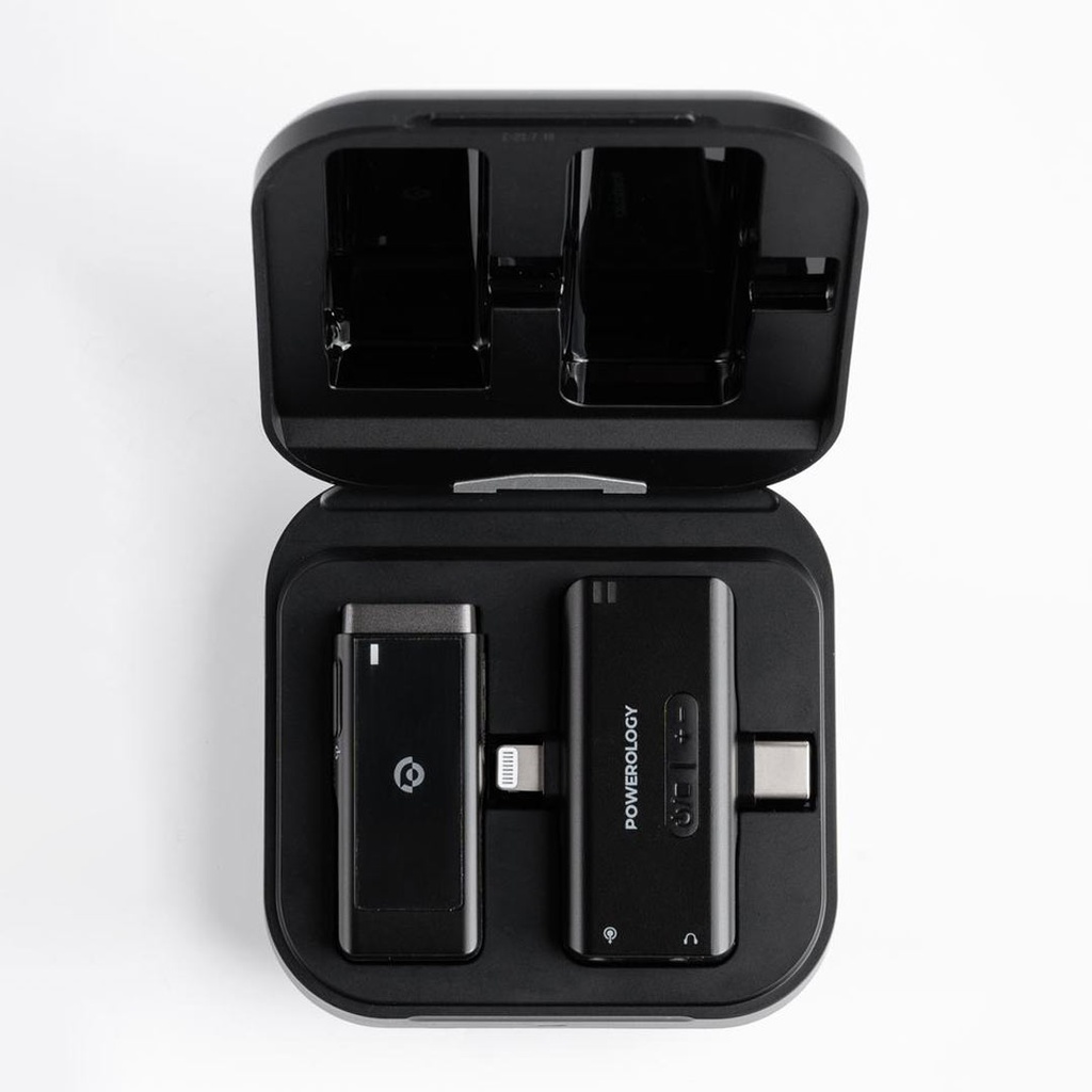 Powerology Wireless Lavalier Microphone – Lightning & Type-C Connectors, Clip-On Noise-Cancelling Mic (PWMIC)