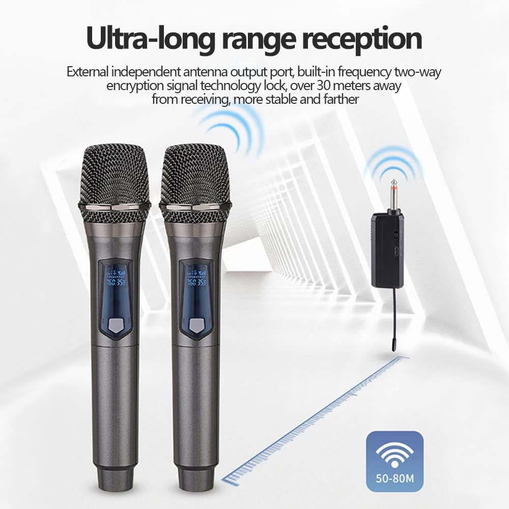 Professional V21 2‑in‑1 Wireless Mic Set – Dual Rechargeable Handheld UHF Microphones