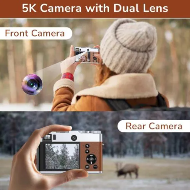 Step up your content game with the Promage 5K 48MP Dual Screen Digital Camera PC225, now available in a value combo offer kit that includes all essential accessories. This 5K dual camera captures stunning 48-megapixel stills and records in 5K / 4K resolution, giving you crisp, high-definition footage for YouTube, social media, and professional projects. The dual LCD design — one on the rear and one front-facing — makes it ideal for vlogging, live streaming, and selfie shoots, so you can monitor framing from both sides.