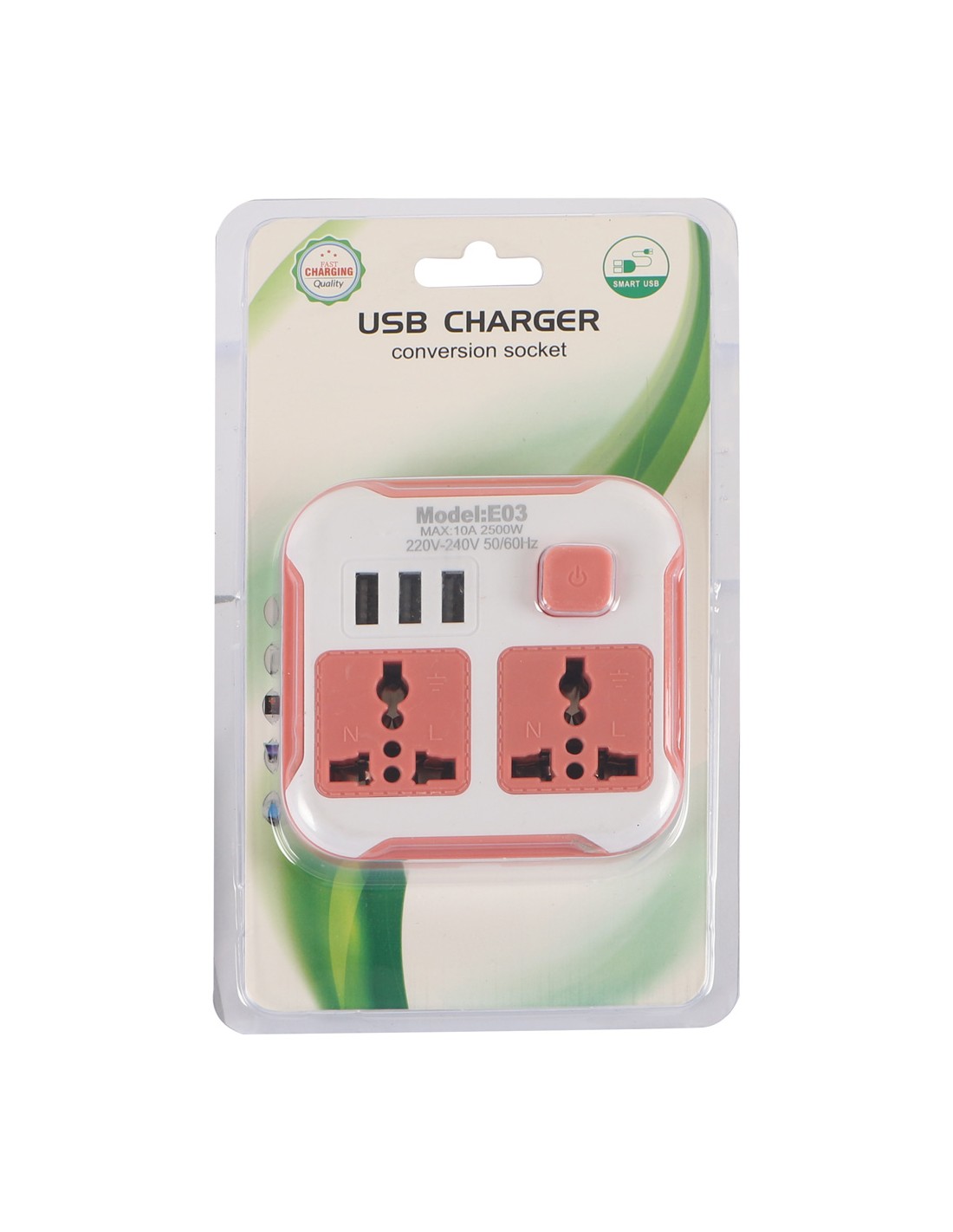 Saffron USB Socket Adapter E03 – Universal Travel Plug with Built‑in USB Port