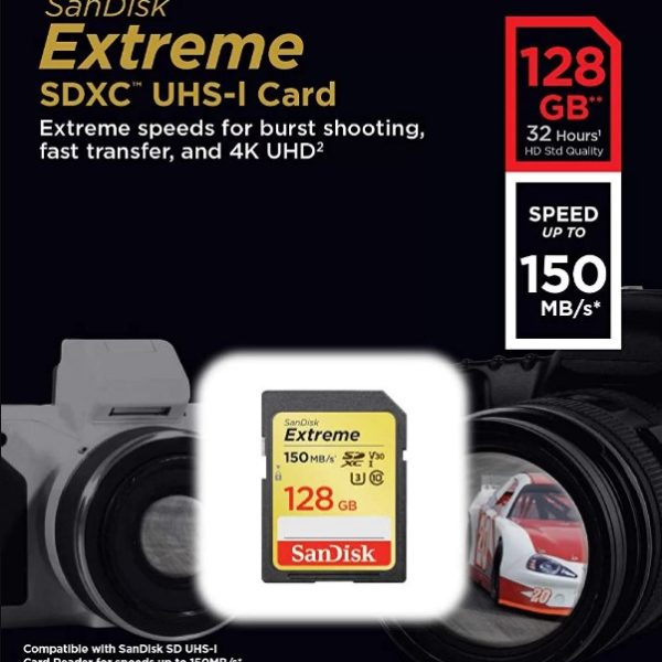 SanDisk Extreme PRO 128GB SDXC UHS-I Memory Card – 200MB/s Read, 90MB/s Write, Class 10 U3 V30