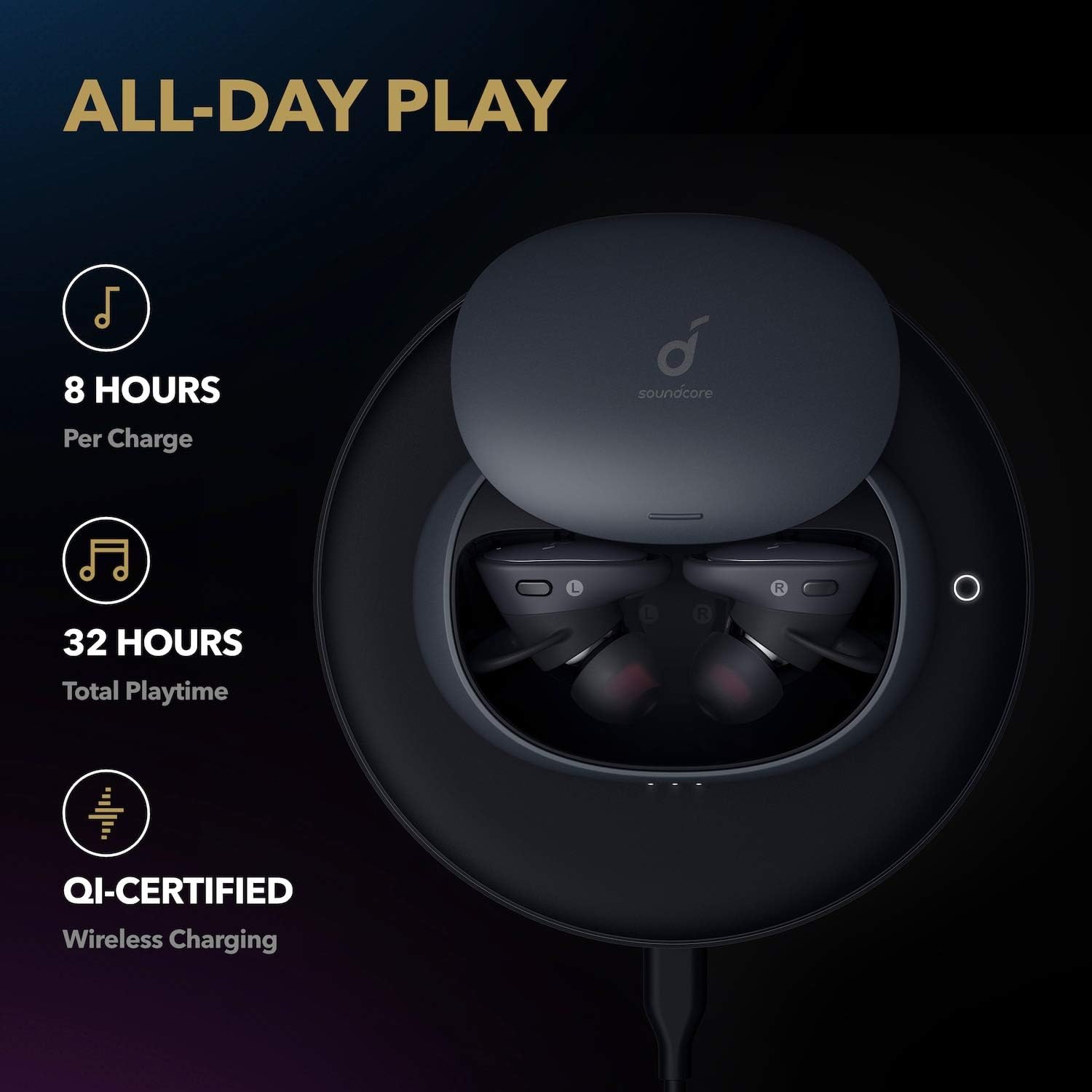 Tailor your listening experience with HearID, which personalizes the EQ based on your hearing profile via the Soundcore app. With Bluetooth 5.0 and support for aptX, you get stable, high-fidelity wireless performance.