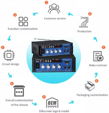 The amplifier includes dual microphone inputs, making it perfect for karaoke sessions, family gatherings, or public speaking events. Its user-friendly interface and digital display ensure easy operation, while the AC/DC power support offers flexibility for various setups.
