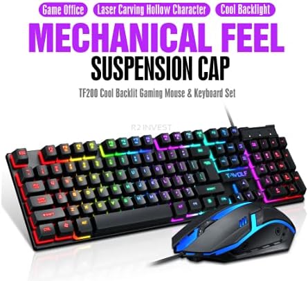 T-Wolf TF200 RGB Gaming Keyboard & Mouse Combo – Wired Mechanical Feel with Rainbow Backlit Keys for PC Gaming, Price in Oman