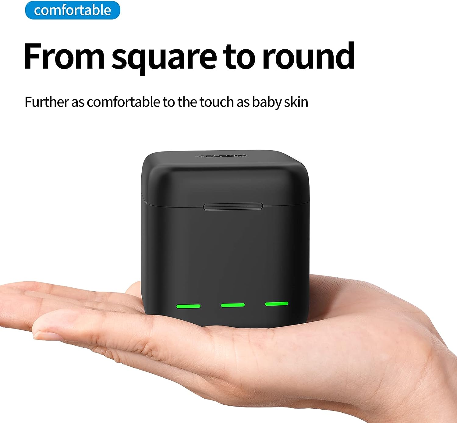 Effortlessly store and recharge your GoPro batteries with the Telesin GP‑BCG‑901, available now at Sky Gadgets Oman. This Telesin charging box Oman is designed to handle up to three GoPro batteries simultaneously—perfect for shoot-intensive sessions. With a high-current USB‑C input (5 V/2.4 A), the GP‑BCG‑901 battery charger fully powers your batteries in approximately 2.5 hours. The sleek cube design includes a magnetic lid, anti‑slip silicone base, and built-in slots to safely store two micro‑SD cards along with your batteries.