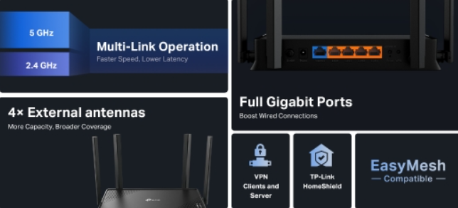 Stay secure with HomeShield router Oman, offering real-time IoT protection, parental controls, and intuitive app management via TP-Link Tether. Whether you’re upgrading your setup in Muscat or hosting guests, the Archer BE220 Oman offers unmatched speed, coverage, and smart features, all optimized for modern living and working environments.