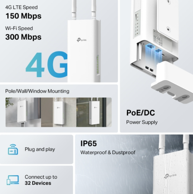 TP-Link TL-MR100 Outdoor 4G LTE Router – 300 Mbps Wi-Fi, IP65 Weatherproof, PoE –